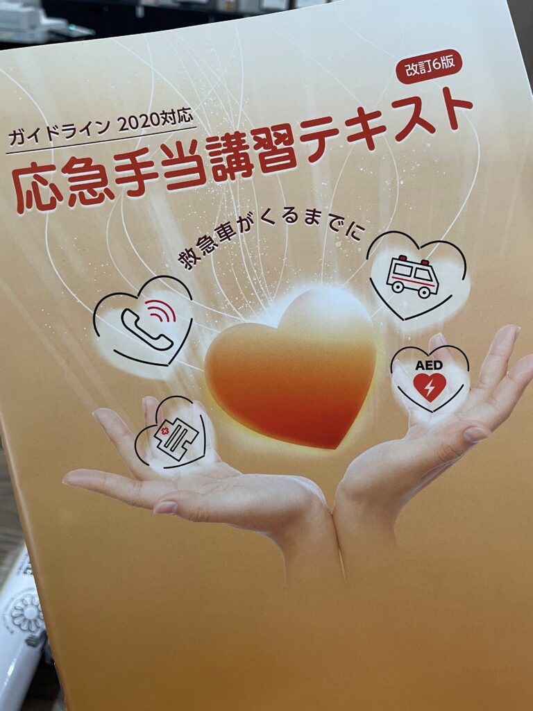 主に胸骨圧迫と人工呼吸、AEDの使用手順等を3時間ほど学びました。