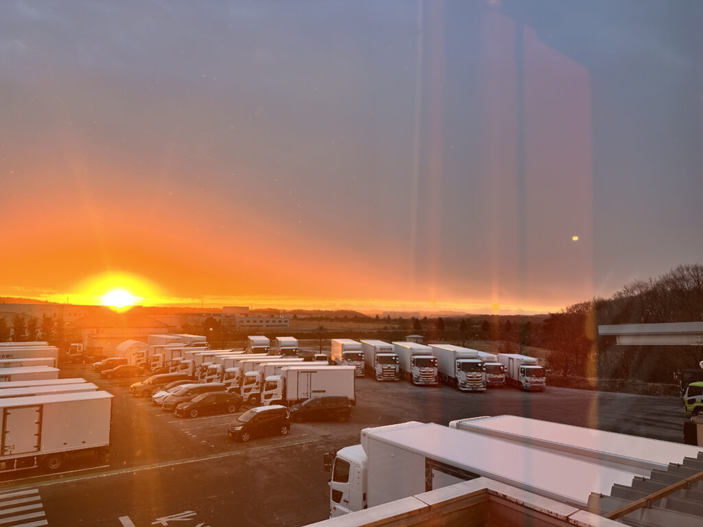 澄みきった冬空に昇る初日の出は、私たちに新しい一年の希望と覚悟を与えてくれました。地域の物流を支えるという使命を胸に、今年も社員一同、気持ちを新たに歩み出しております。