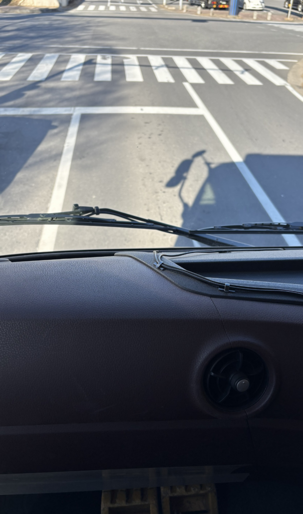 停止線から間隔をあけて止まると、曲がってくるトラックが曲がりやすいと教えてもらい、