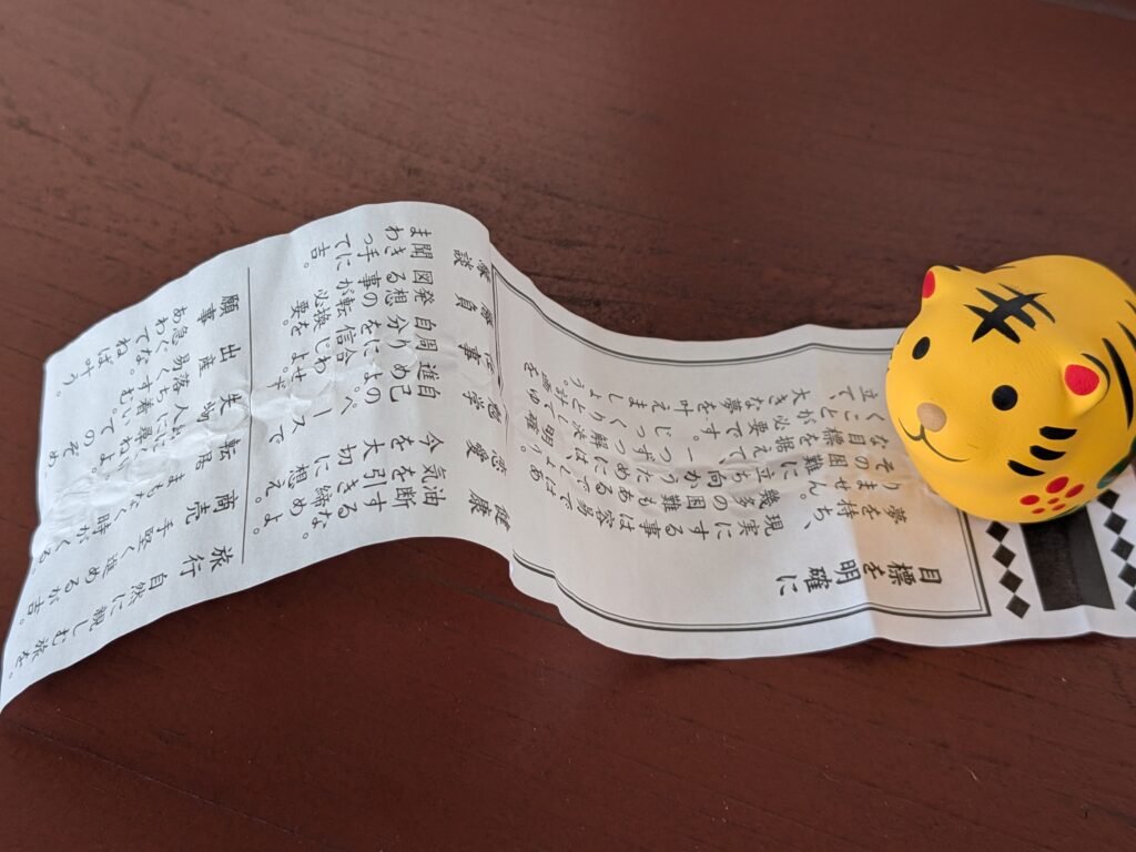 おみくじは末吉。十二支御籤なるおみくじのキャラクターが可愛い。